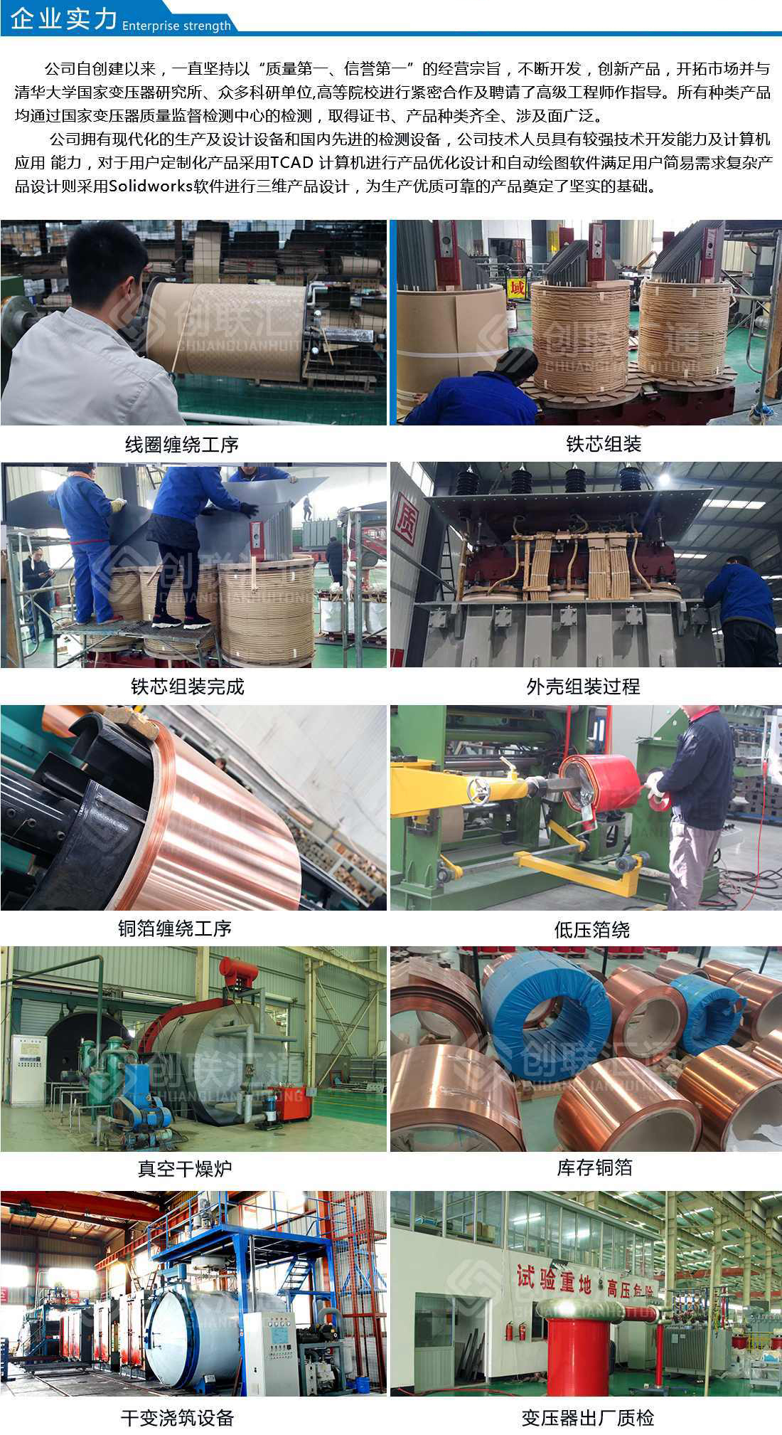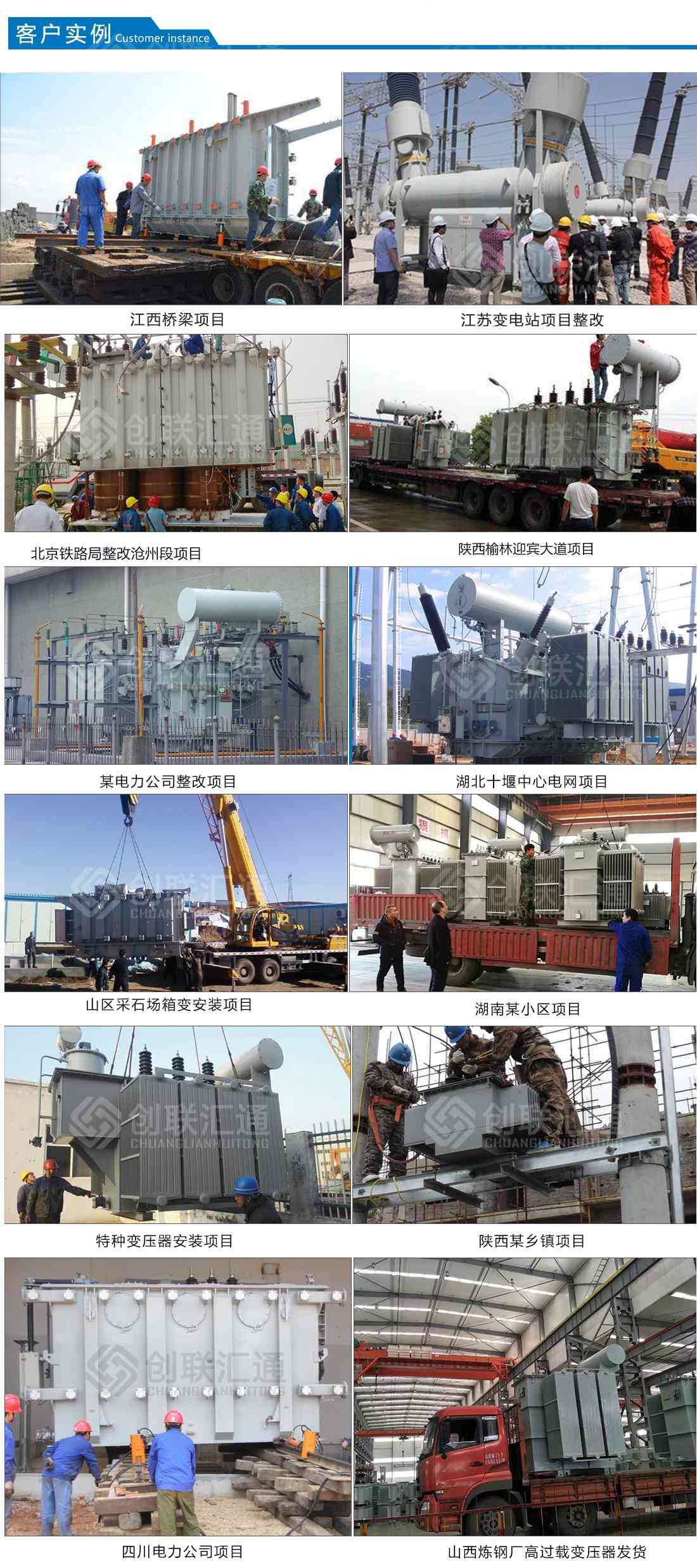 答 創(chuàng)聯(lián)匯通主營產(chǎn)品有:S11(13)、S20(22)新能效及SH15系列10KV級~110KV級油浸式電力變壓器、有載調(diào)壓電力變壓器、非晶合金變壓器、SC(B)10 (13)、SG(B)10(13)及SC(B)14(18)新能效系列干式變壓器、開關(guān)柜及組合式變壓器、箱式變電站及防竊電、礦用、整流、電爐等特殊電力變壓器。產(chǎn)品廣泛用于電力、核電站、交通、礦山、冶金、建...
