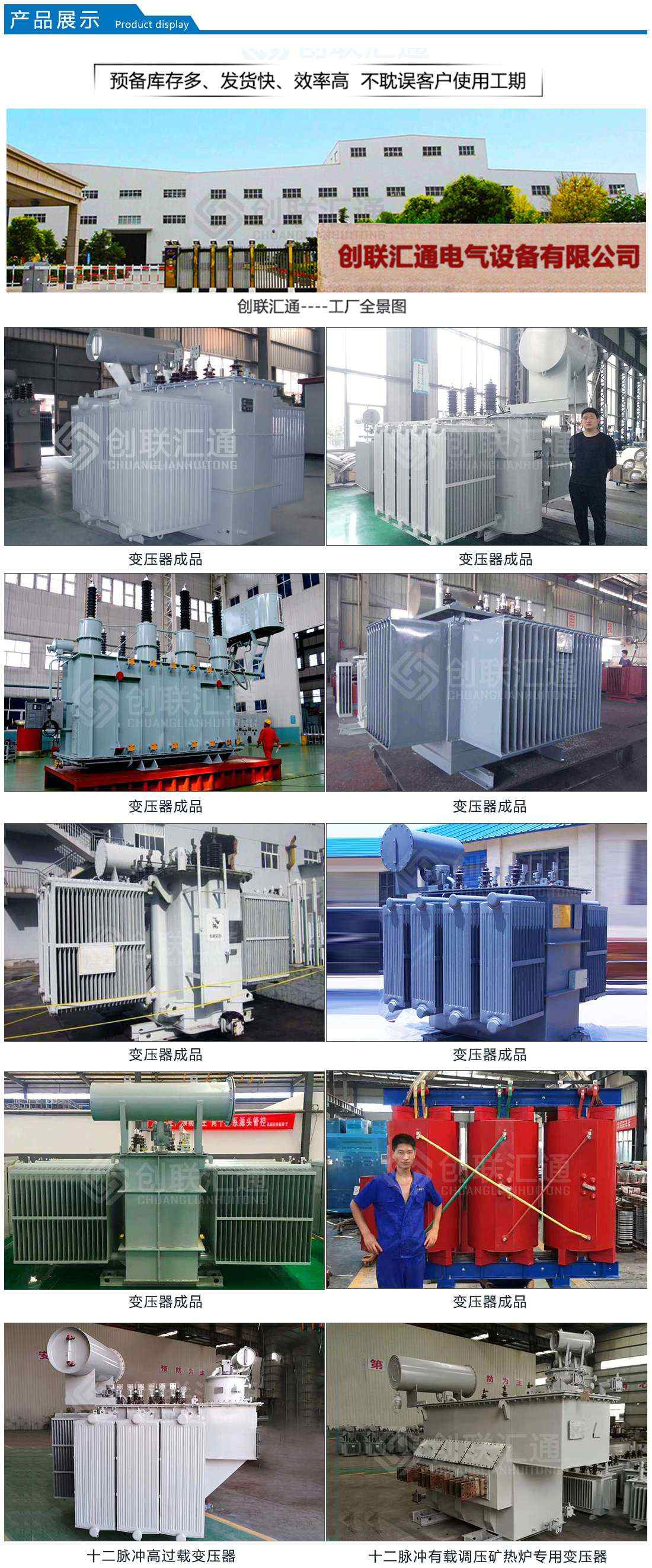 創(chuàng)聯(lián)匯通主營產(chǎn)品有:S11(13)、S20(22)新能效及SH15系列10KV級~110KV級油浸式電力變