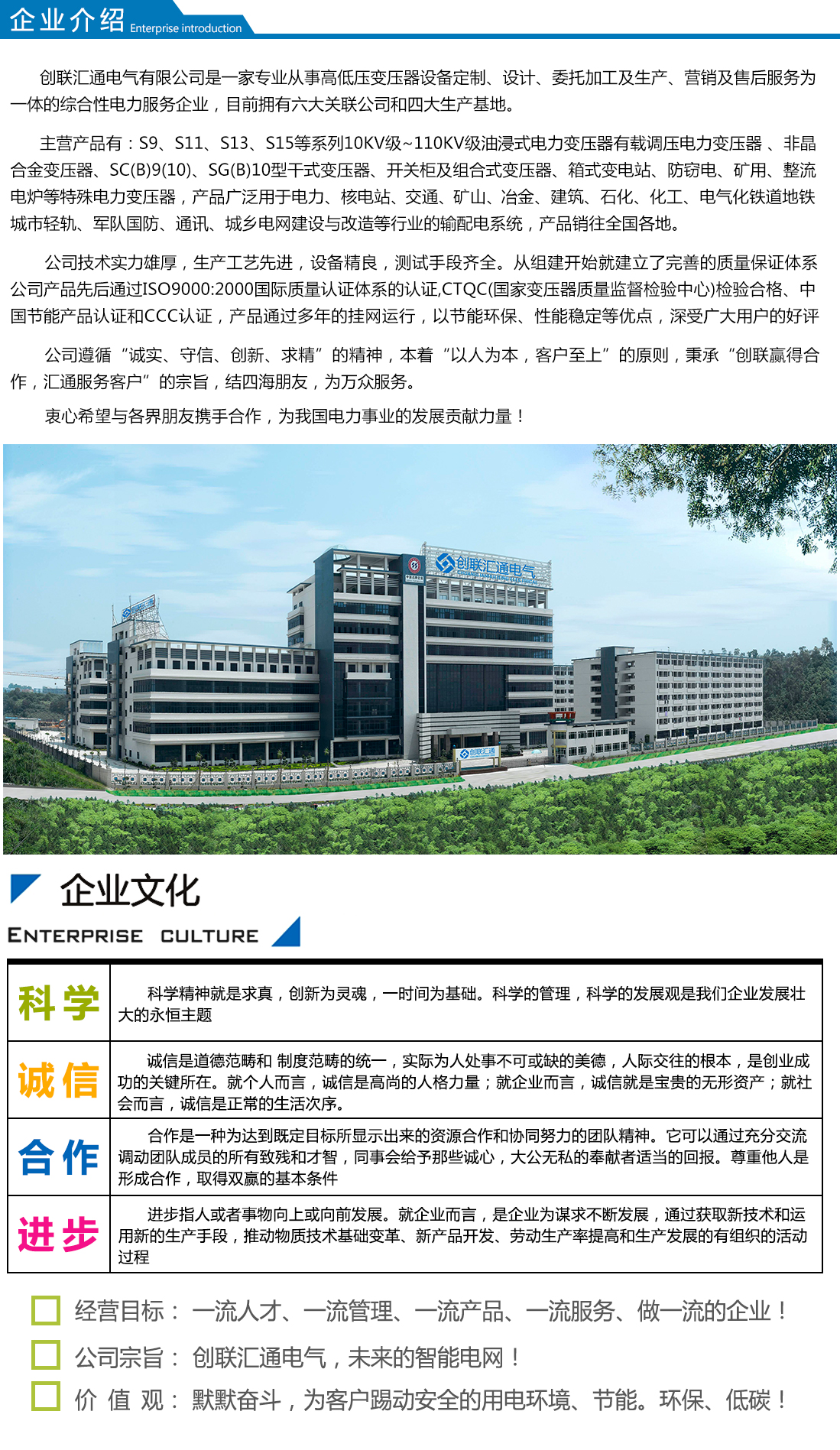 創(chuàng)聯(lián)匯通主營產(chǎn)品有:S11(13)、S20(22)新能效及SH15系列10KV級~110KV級油浸式電力變