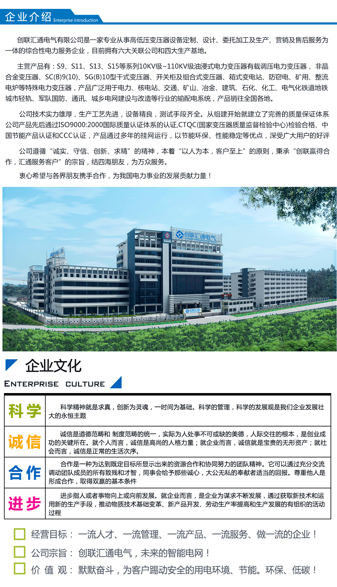 創聯匯通主營產品有:S11(13)、S20(22)新能效及SH15系列10KV級~110KV級油浸式電力變